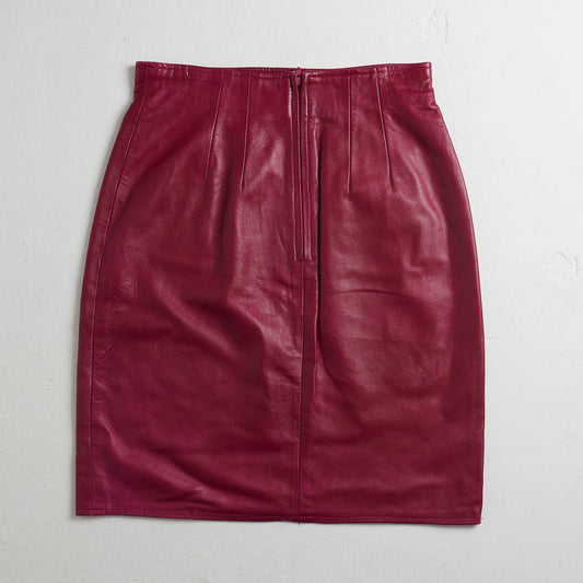 Raspberry vintage leather pencil skirt