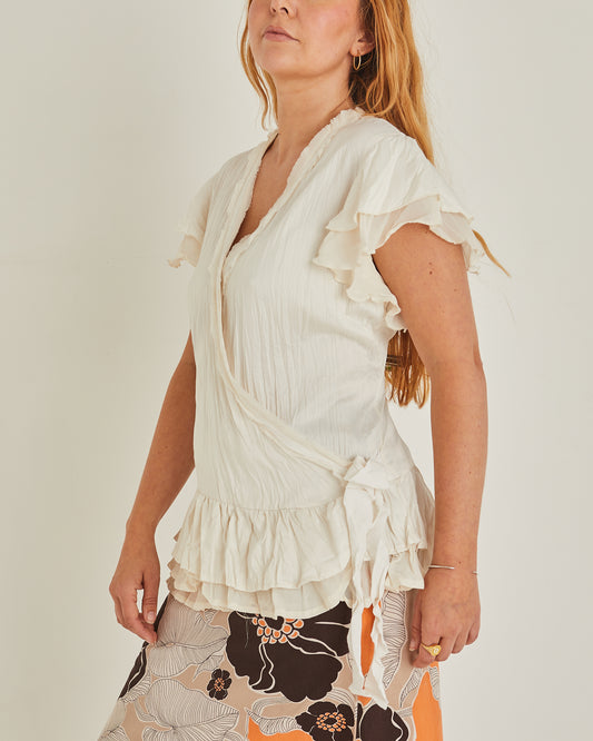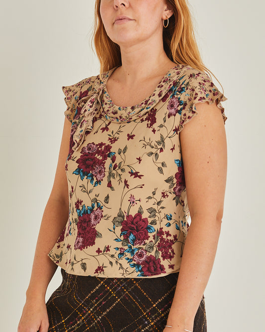 Pink and Cream Floral Semi-Sheer 90s Shirt