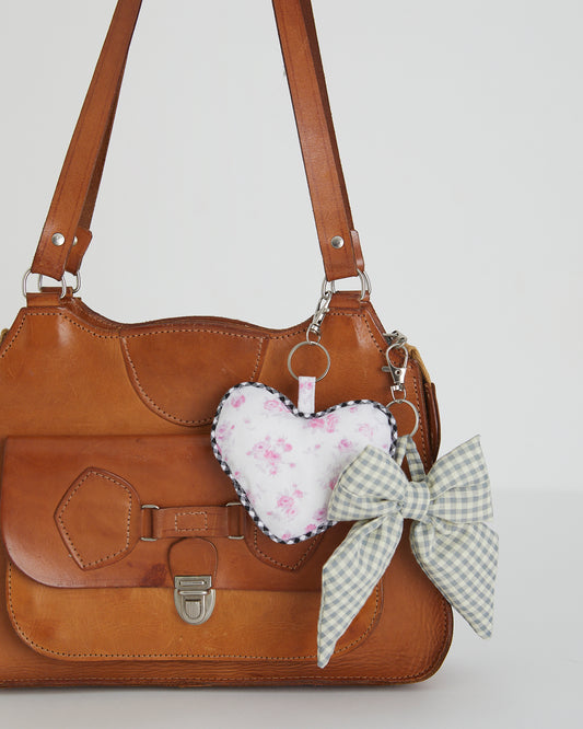 Blue Gingham Heart Bag Charm