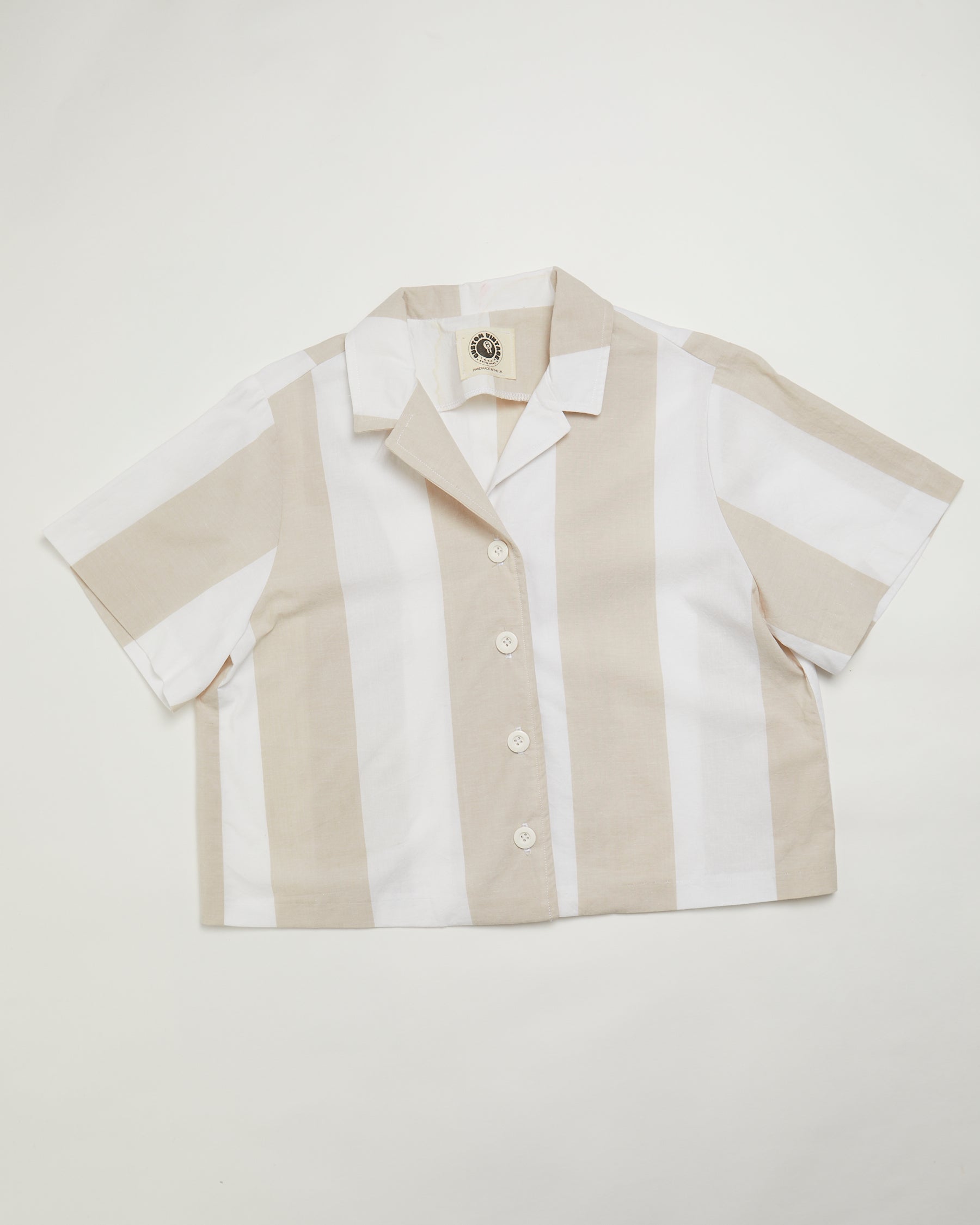 The eye-catching broad stripe print in beige and of white creates a beachy vibe. The relaxed fit and soft, breathable fabric ensure comfort in every situation.