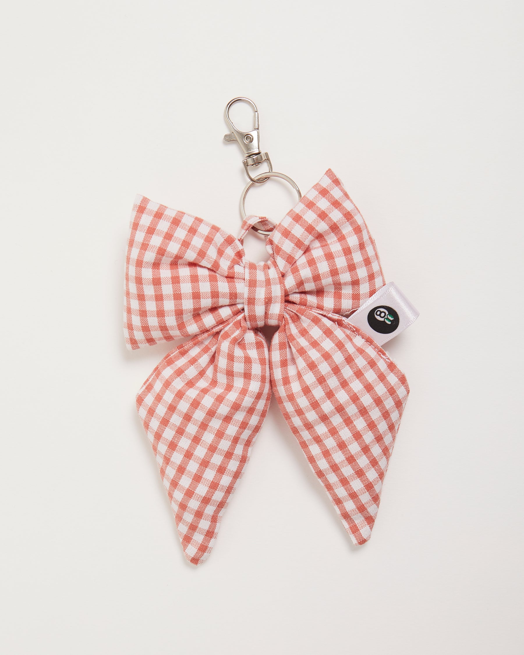 Add a touch of charm to your everyday essentials with this delightful upcycled gingham bow charm. Up-cyled from repurposed materials, this unique accessory is both stylish and eco-friendly.