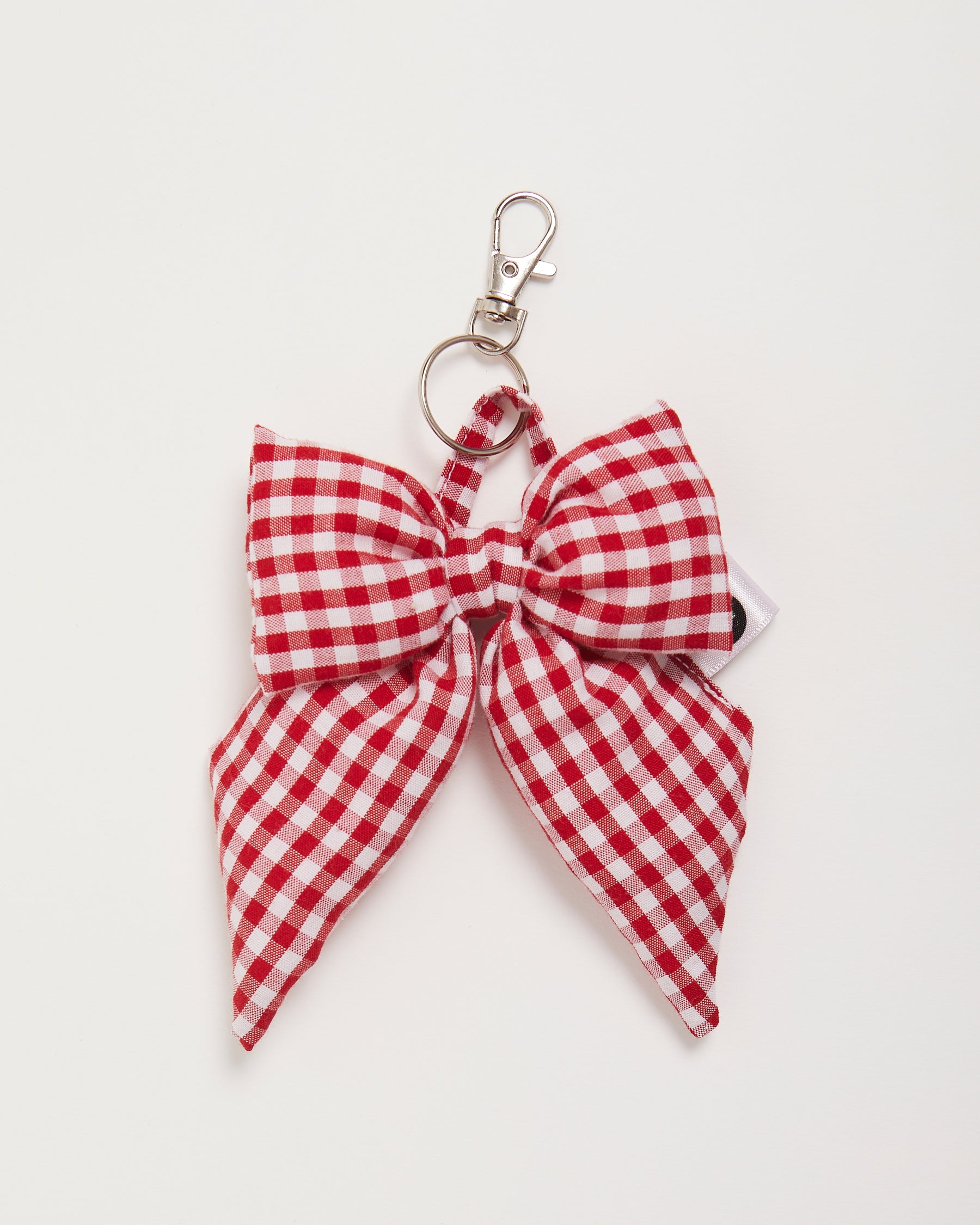 Add a touch of charm to your everyday essentials with this delightful upcycled gingham bow charm. Up-cyled from repurposed materials, this unique accessory is both stylish and eco-friendly.